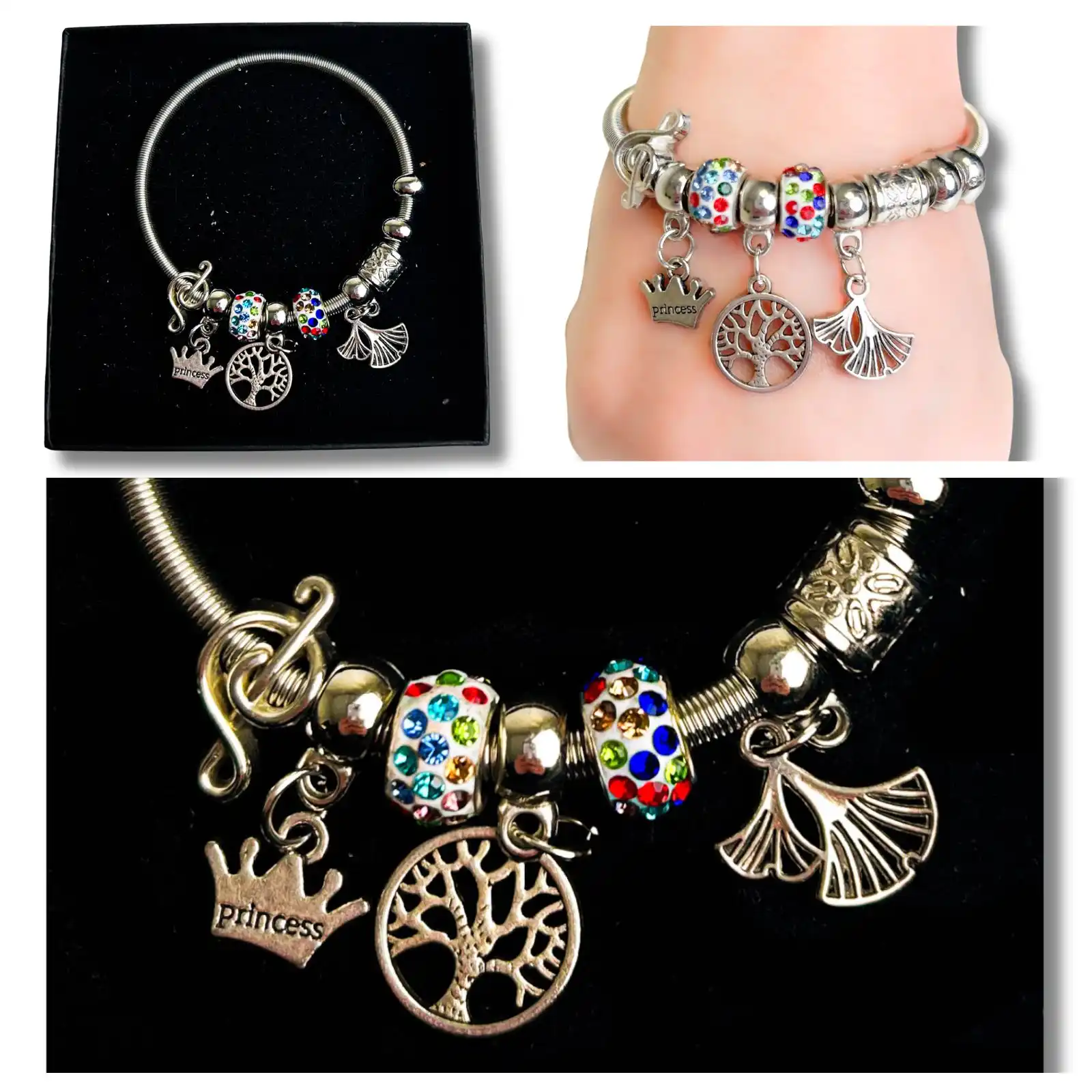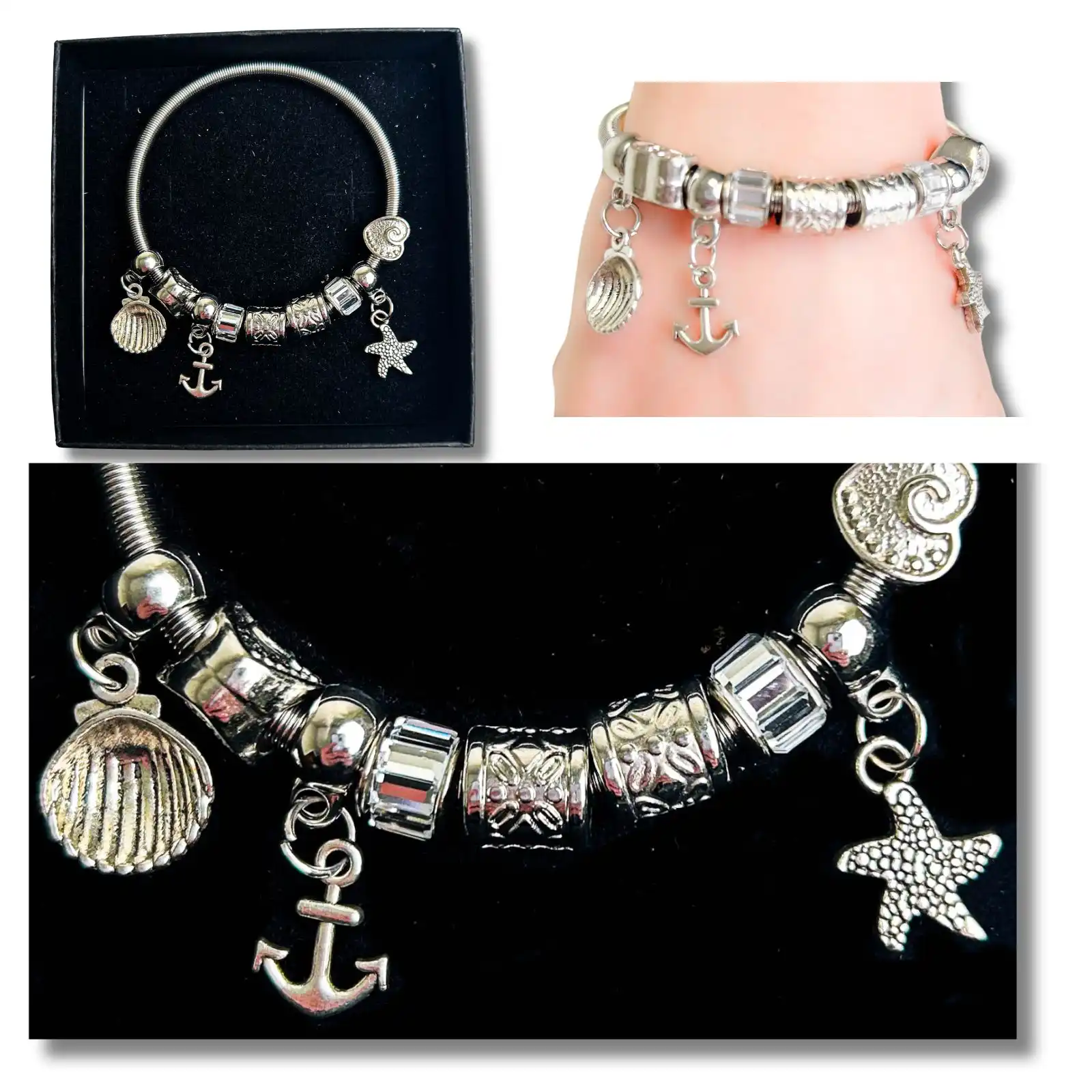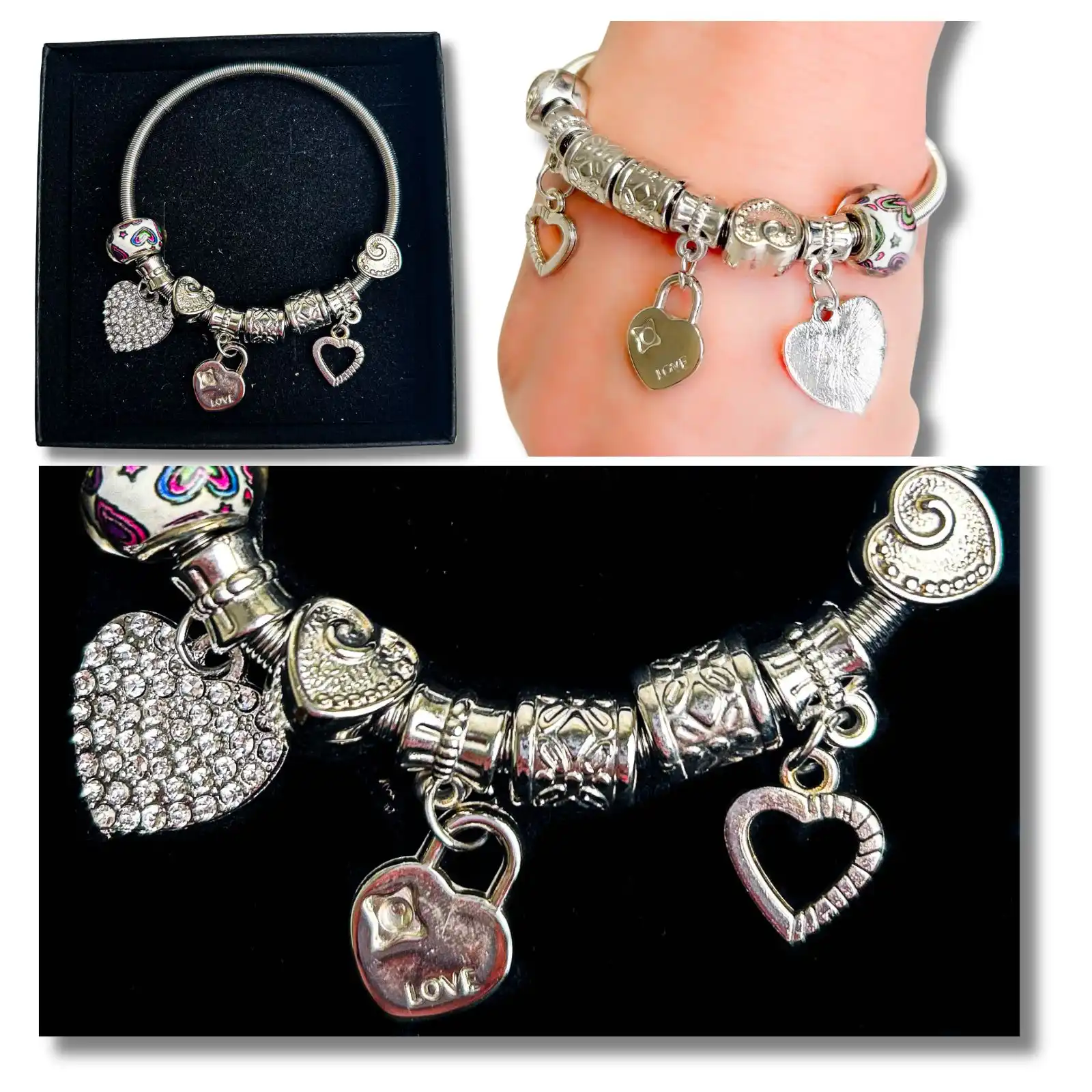 BRACELET CHARMS SILVER BOXED 4 ASSTD COLS